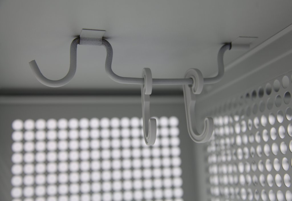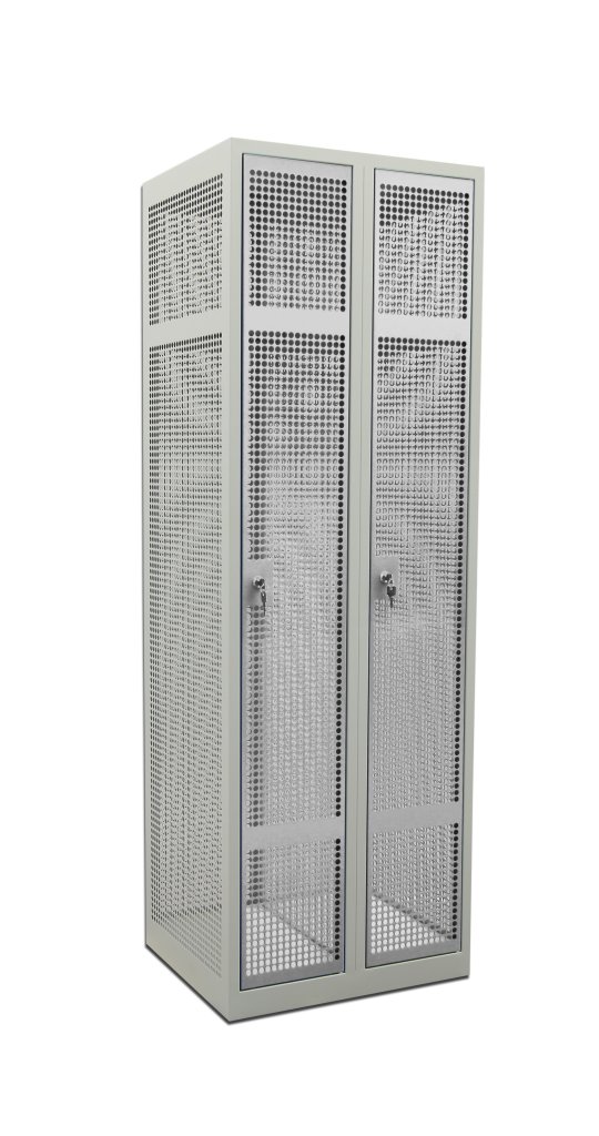 Šatňová skriňa dvojoddielová dierovaná, farba RAL 7035 svetlo šedá.