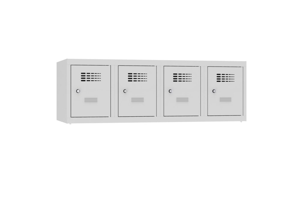 Štvordverová šatníková skrinka so zváranou konštrukciou a moderným dizajnom ventilačného systému. Výška 1800 x šírka 1200 x hĺbka 500 mm. Štandardné vybavenie skrinky: tyč s dvoma háčikmi, háčik na uterák, zrkadlo, polica nad tyčou, samolepiaci štítok na meno. Cylindrický zámok alebo uzáver na visiaci zámok.