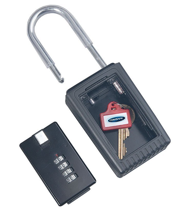 Skrinka na kľúče Key Protect, šírka 90, výška 130, hĺbka 60 mm, zamykanie na štvormiestny kód, hmotnosť 1 kg. Schránku je možné pripevniť k domu, do auta apod., vhodný na úschovu dôležitých kľúčov, ktoré musia byť kedykoľvek prístupné napr. pre sociálne zariadenia, pomoc v domácnosti, Červený kríž a pod.