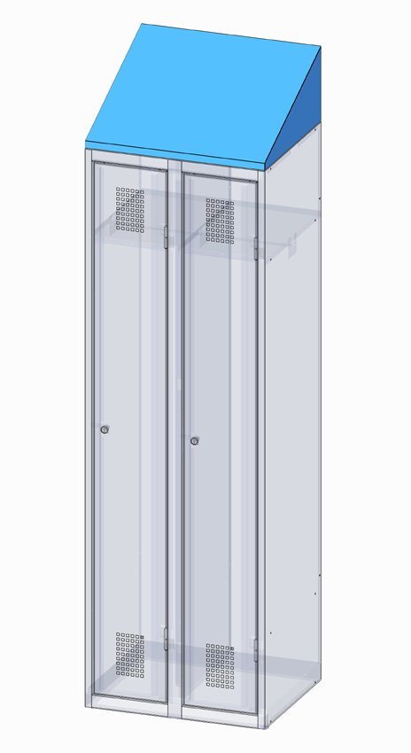 Perforace korpusu - korpus šatníků je opatřen otvory pro spojování šatníků v řadách, otvory pro připevnění soklu nebo šikmé stříšky, otvory pro nasazení na podnož, otvory pro vloženídělící přídavné příčky. |