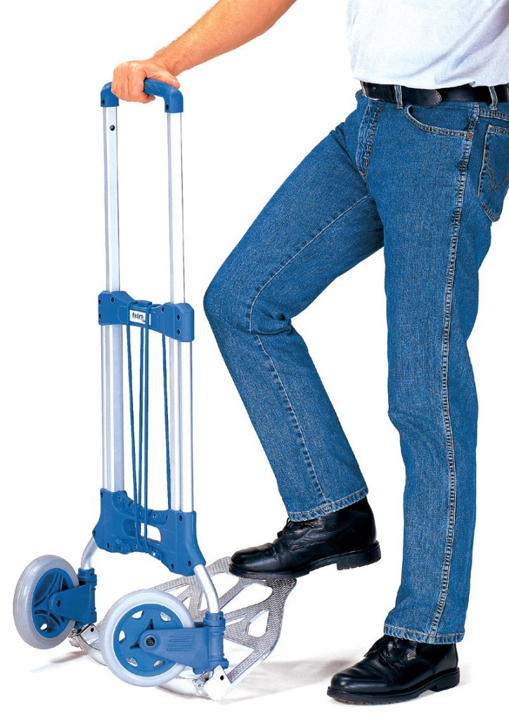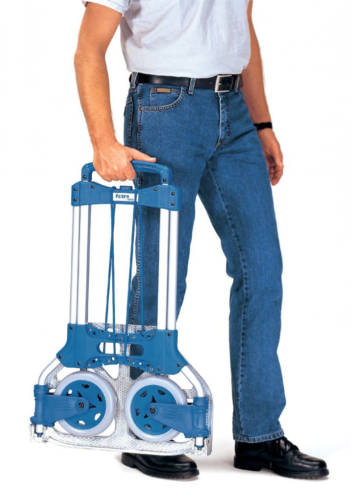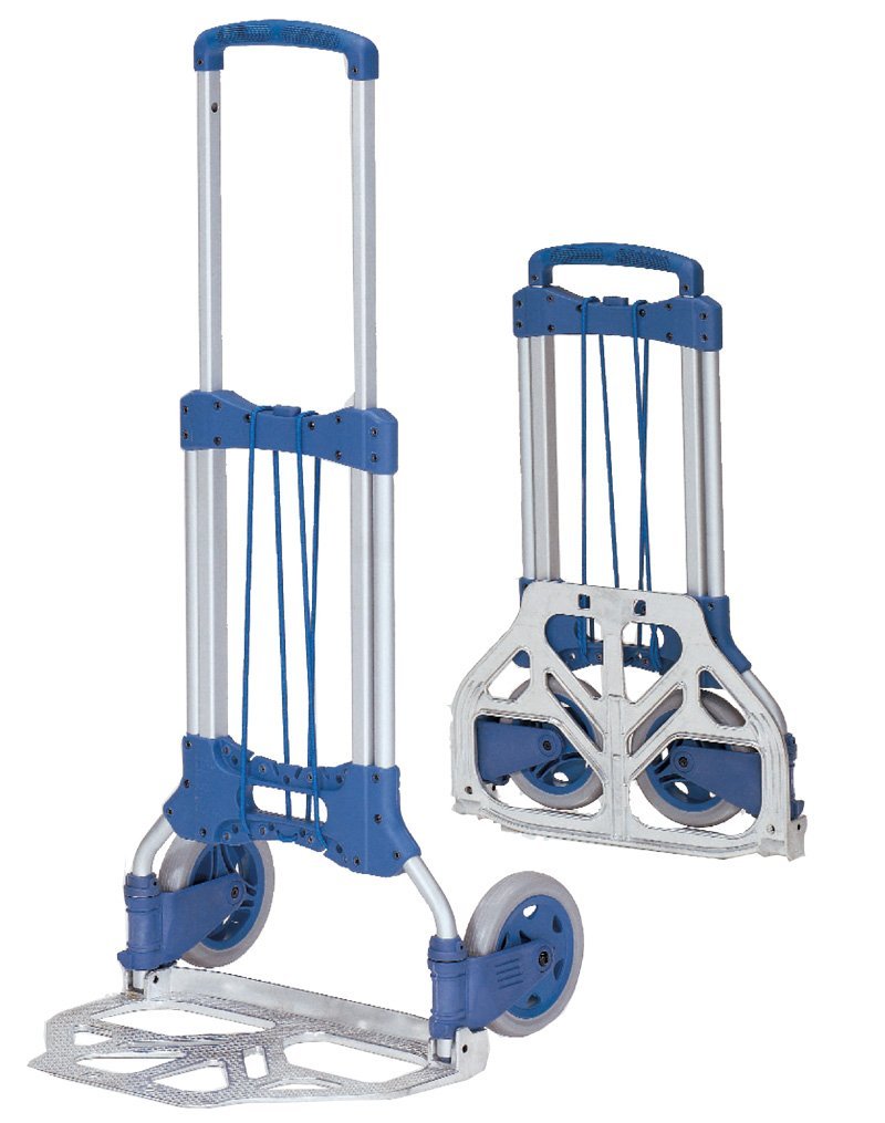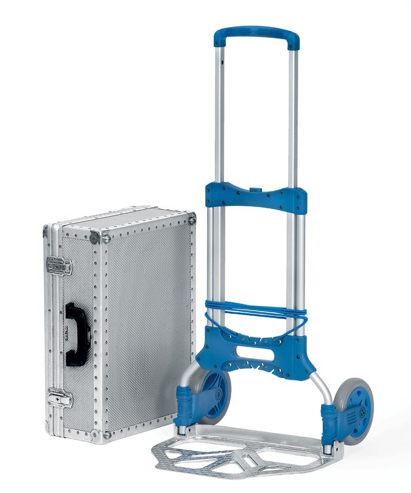 Skladacia rudla hliníková nemeckej výroby, sklopná lopata z hliníka, konštrukcia hliník-oceľ, niektoré partie z modrého plastu, držadlo z príjemného nekĺzavého materiálu. Systém upínacích popruhov pre zachytenie nákladu. Kolesá zo šedomodrého polyméru, nešpiniace.