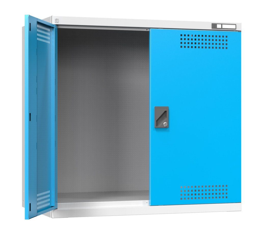 Skriňa na kvapaliny s krídlovými dverami, perforácia po 25 mm pre výškové nastavovanie políc, plná dvierka s výstuhami pre perfo, nosnosť 300 kg. Výška 1000, šírka 1044, hĺbka 625 mm. Dvere skrine sú opatrené vetracími otvormi. Možno dovybaviť policami, záchytnými vaňami a perfo panely.