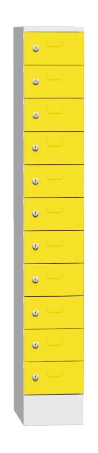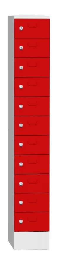 Skriňa je určená na triedenie pošty, dokumentov, či iných cenností. Samostane uzamykateľné schránky na cyl. zámok alebo uzáver pre visiaci zámok. Výška 1950 x šírka 300 x hĺbka 500 mm, 11 oddelení s vhadzovacím otvorom. Farba korpusu svetlosivá RAL 7035.