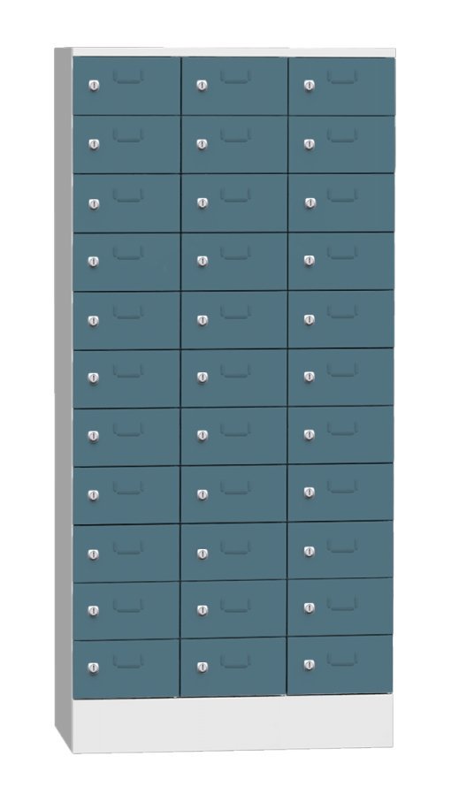 Skriňa je určená na triedenie pošty, dokumentov, či iných cenností. Samostane uzamykateľné schránky na cyl. zámok alebo uzáver pre visiaci zámok. Výška 1950 x šírka 300 x hĺbka 500 mm, 11 oddelení s vhadzovacím otvorom. Farba korpusu svetlosivá RAL 7035.