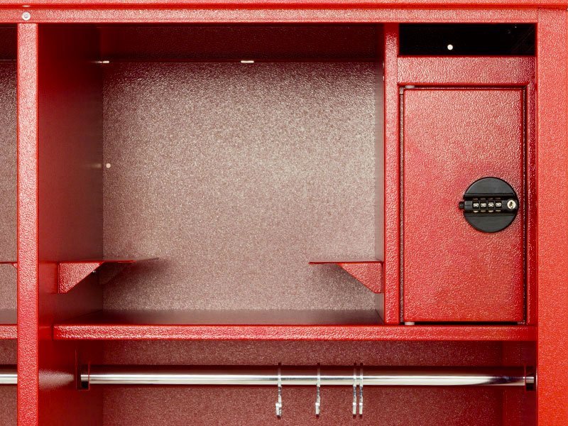 Šatňové skrinky upravené špeciálne pre hasičov a záchranné zložky. Skrinky sú vybavené špeciálnou uzamykateľnou schránkou so štrbinou pre vhadzovanie drobných predmetov. Skrinka je otvorená, aby výstroj bola ihneď dostupná. Nožičky nie sú súčasťou skrine, je možné ich dokúpiť samostatne v červenej farbe RAL 3000 alebo v čiernej farbe RAL 9005.