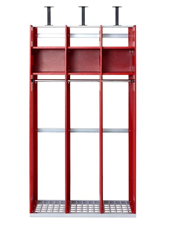Šatňové skrinky upravené špeciálne pre hasičov a záchranné zložky. Polovica skrinky je otvorená, aby zásahový odev a výstroj boli ihneď dostupné pri príprave na zásah. Nožičky nie sú súčasťou skrine, je možné ich dokúpiť samostatne v červenej farbe RAL 3000 alebo v čiernej farbe RAL 9005.