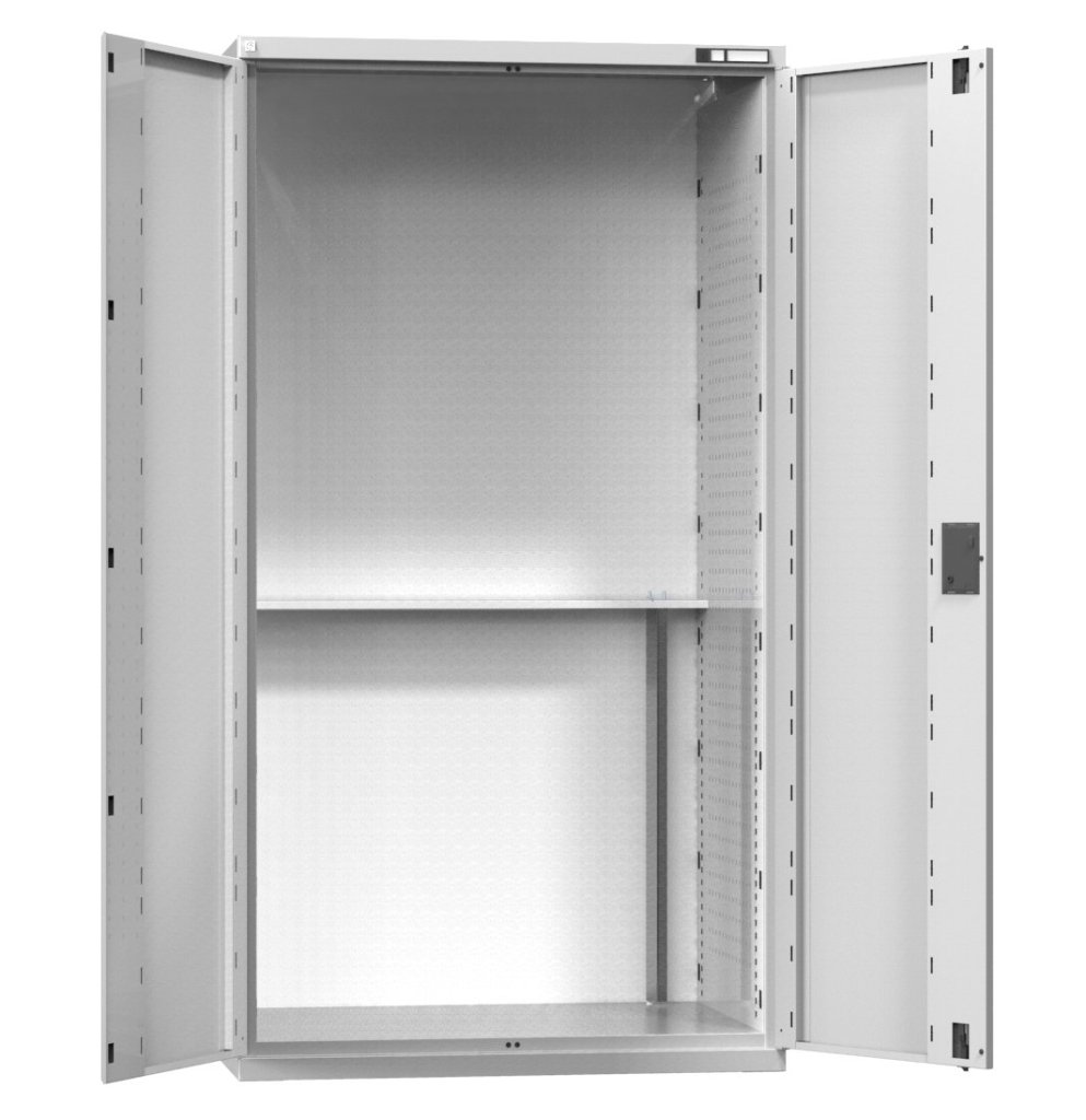 Skriňa pre NC nástroje s krídlovými dverami, plné krídlové dvere, nosnosť 600 kg. Výška 1950, šírka 1044, hĺbka 655 mm, bez vnútorného vybavenia.