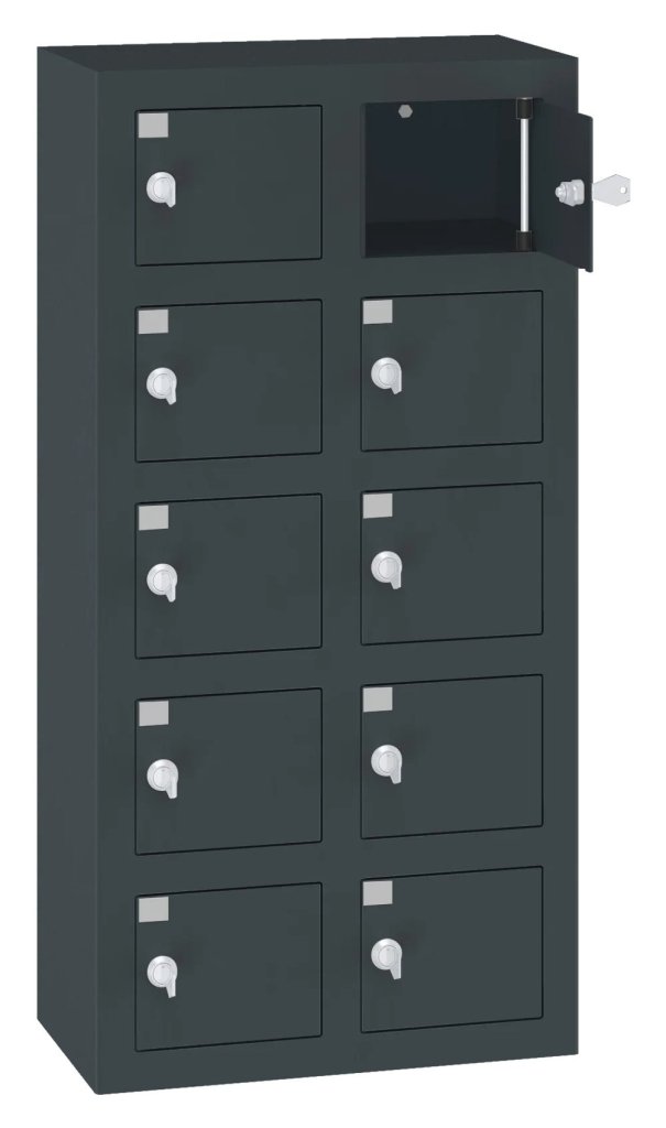 Kovová skriňa s boxmi je určená pre bezpečné uloženie mobilných telefónov. Vhodné pre miesta, kde nie je dovolené mať pri sebe mobilný telefón, ako napríklad školy, výrobné haly či knižnice. 16 farebných odtieňov na výber v cene bez príplatku. Rôzne druhy zamykanie.