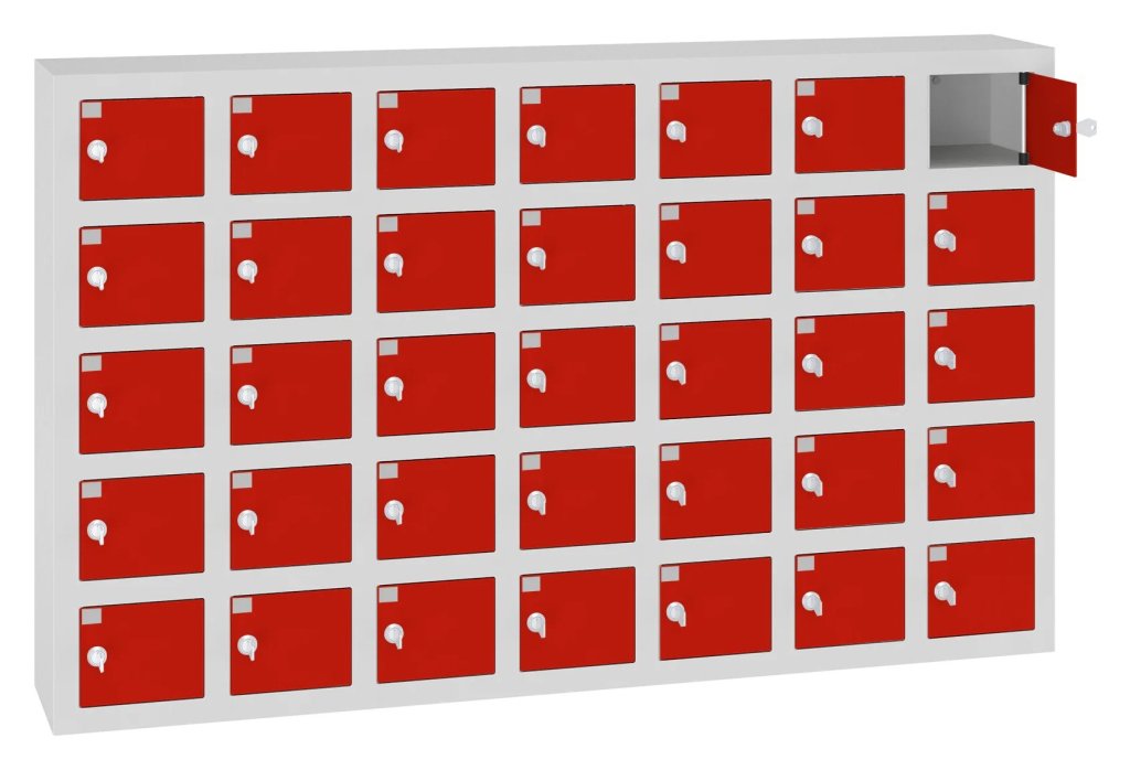 Kovová skriňa s boxmi je určená pre bezpečné uloženie mobilných telefónov. Vhodné pre miesta, kde nie je dovolené mať pri sebe mobilný telefón, ako napríklad školy, výrobné haly či knižnice. 16 farebných odtieňov na výber v cene bez príplatku. Rôzne druhy zamykanie.