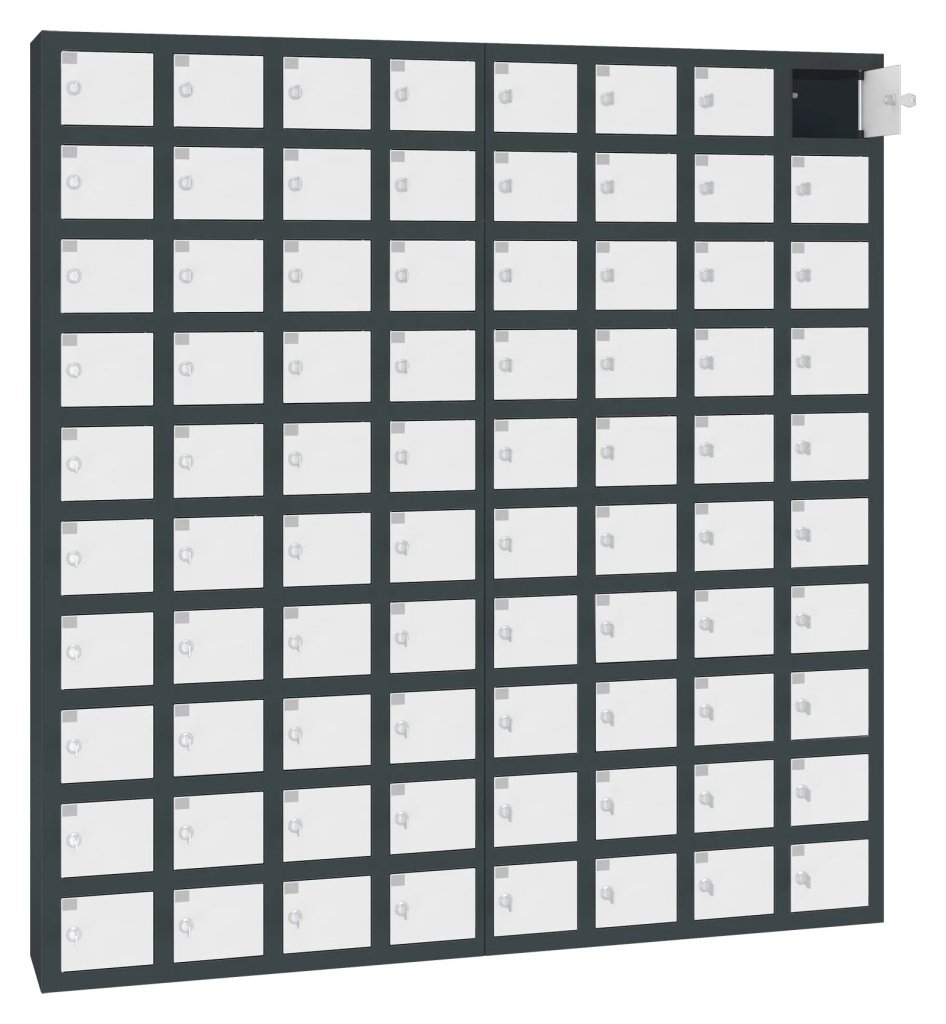Kovová skriňa s boxmi je určená pre bezpečné uloženie mobilných telefónov. Vhodné pre miesta, kde nie je dovolené mať pri sebe mobilný telefón, ako napríklad školy, výrobné haly či knižnice. 16 farebných odtieňov na výber v cene bez príplatku. Rôzne druhy zamykanie.