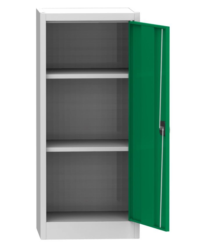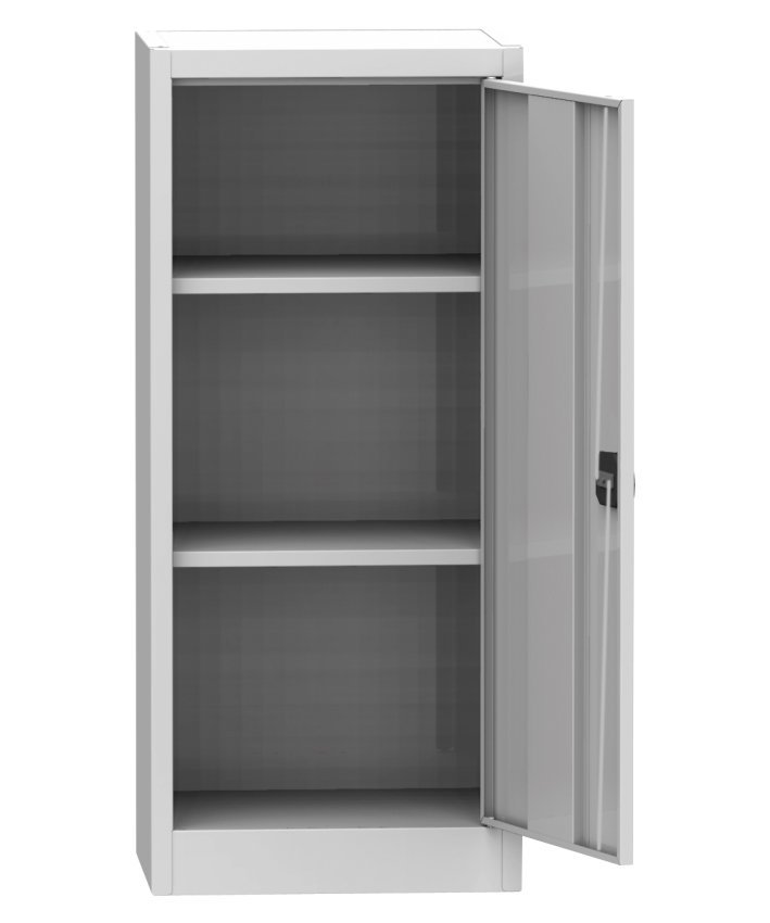 Skriňa s drôtenými dverami, výška 1150 x šírka 505 x hĺbka 400 mm. Zamykanie na cylindrický zámok s rozvorovým mechanizmom. 2x staviteľná oceľová polica (nosnosť 60 kg). Dvere s drôtenou výplňou. Farba korpusu RAL 7035 svetlosivá.