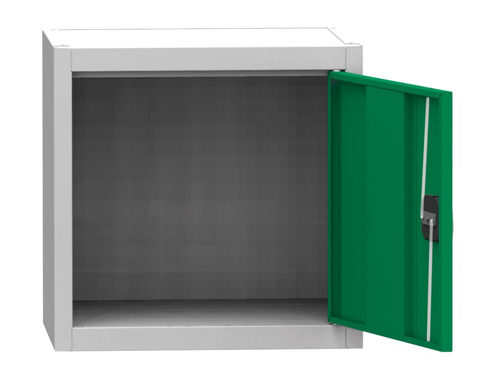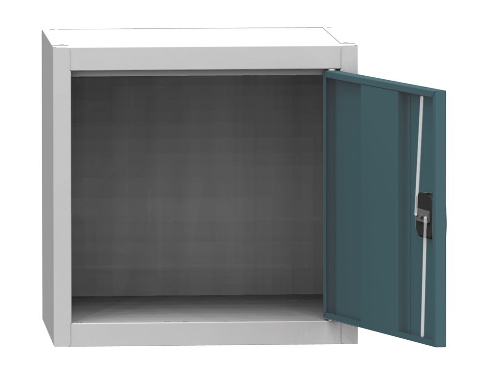 Skriňa s plnými dverami, výška 800 x šírka 505 x hĺbka 400 mm. Zamykanie na cylindrický zámok s rozvorovým mechanizmom. 1 x staviteľná oceľová polica (nosnosť 60 kg). Možnosť náhrady plných dverí dverami so sklenenou výplňou, s drôtenou výplňou alebo lamino dverami v odtieni buk, breza alebo čerešňa. Farba korpusu RAL 7035 svetlosivá.