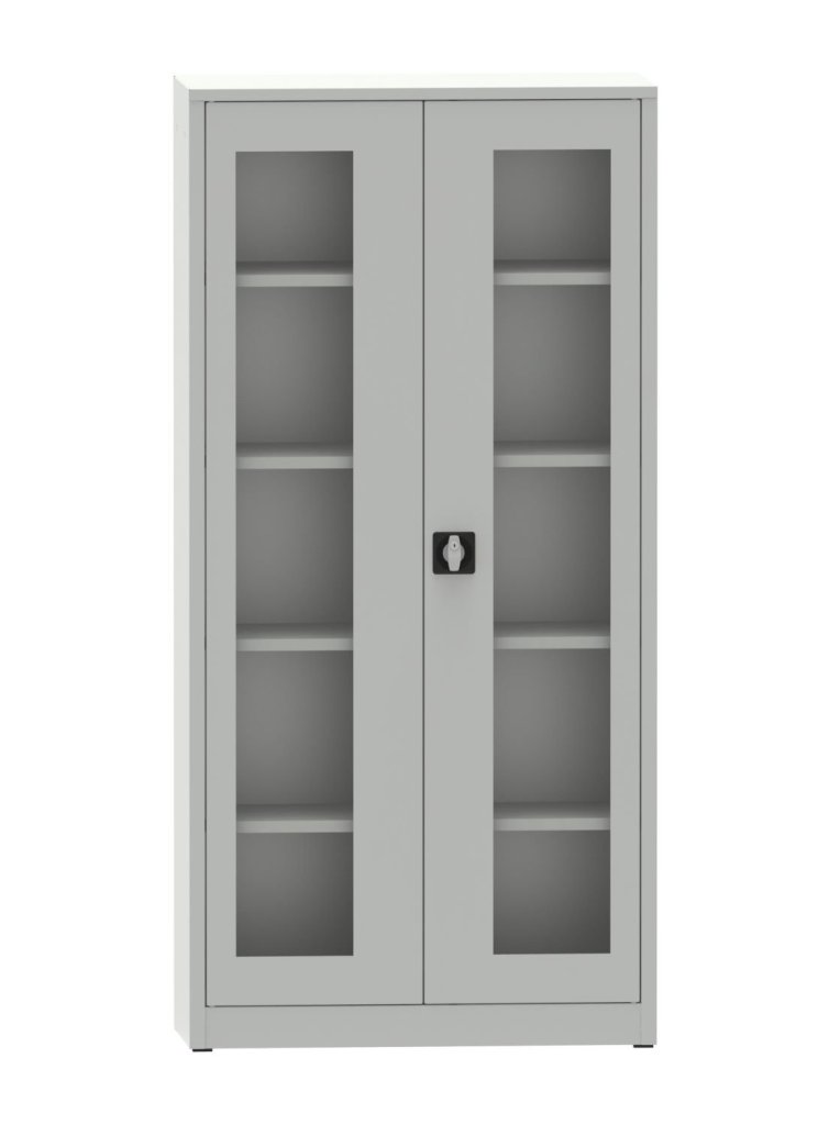 Skriňa spisová dvojdverová. Výška 1950 x šírka 950 x hĺbka 400 mm, 4 police. Rozvorový zámok. Farba korpusu RAL 7035 svetlosivá. celý popis a parametre