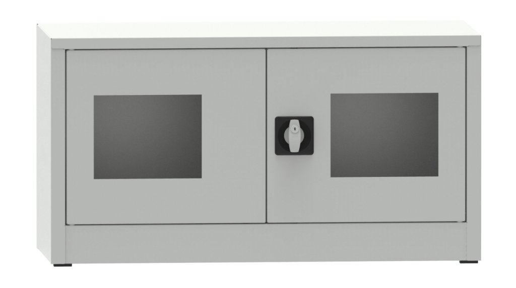 Skriňa dvojdverová. Výška 500 x šírka 950 x hĺbka 400 mm, bez police. Rozvorový zámok. Farba korpusu RAL 7035 svetlosivá. Dodáva sa demontovaná - jednoduchá montáž.