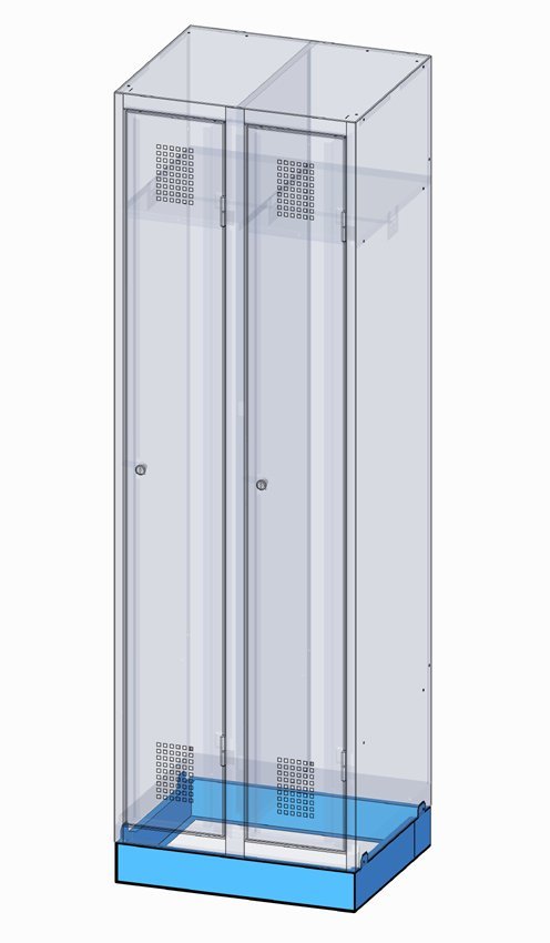 Perforace korpusu - korpus šatníků je opatřen otvory pro spojování šatníků v řadách, otvory pro připevnění soklu nebo šikmé stříšky, otvory pro nasazení na podnož, otvory pro vloženídělící přídavné příčky.