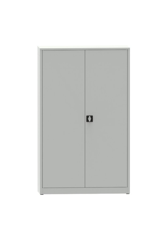 Dvojdverová kovová zvarovaná skriňa, šírka 1200, výška 1950, hĺbka 500 mm, 4x prestaviteľná polica. Farba korpusu RAL 7035 sivá, celý popis a parametre