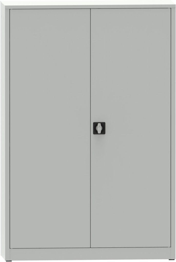 Dvojdverová kovová zvarovaná skriňa, šírka 1200, výška 1800, hĺbka 600 mm, 4x prestaviteľná polica. Farba korpusu RAL 7035 sivá, celý popis a parametre