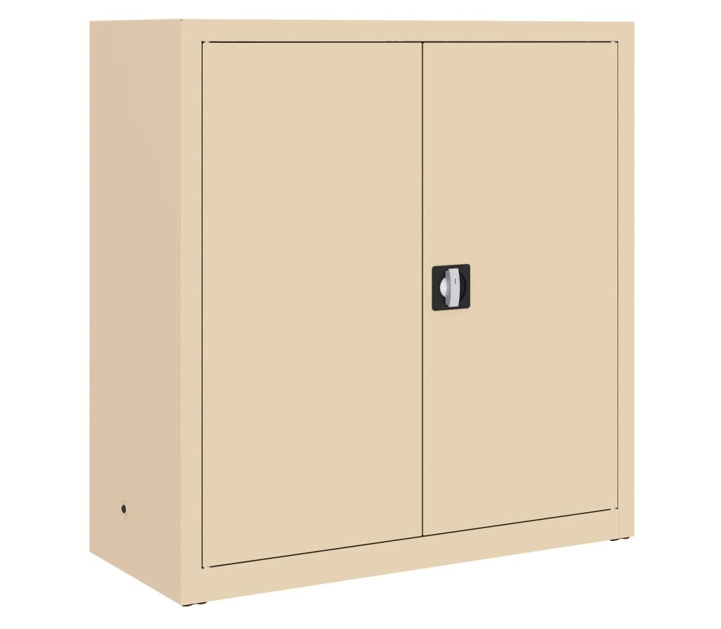 Dvojdverová kovová skriňa s dvomi policami, šírky 1000 mm (pozri varianty produktu), výška 1040, hĺbka 435 mm. Dvojbodový rozvorový zámok, rôzne farby.