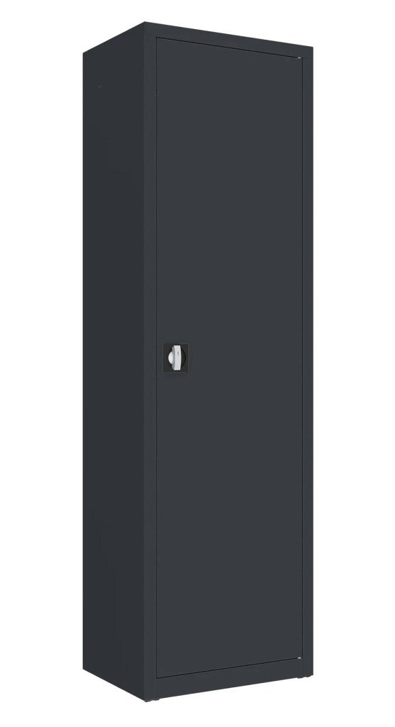 Jednodverová kovová skriňa so štyrmi policami, šírka 600 mm, výška 1990, hĺbka 435 mm. Dvojbodový rozvorový zámok, rôzne farby. celý popis a parametre