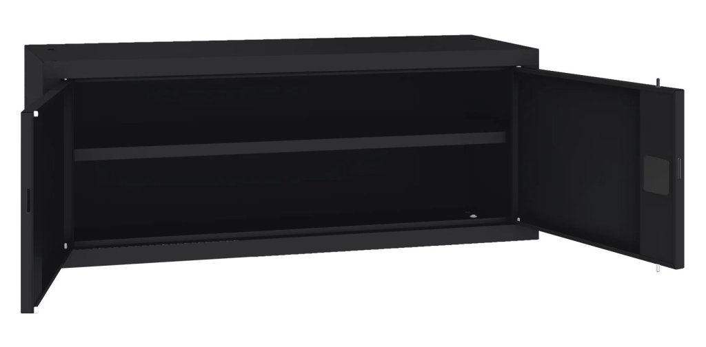 Dvojdverová kovová skriňa s jednou policou, vhodná ako nadstavec. Šírka 1200 mm, výška 465, hĺbka 435 mm. Dvojbodový rozvorový zámok, rôzne farby.