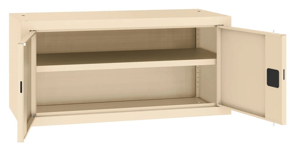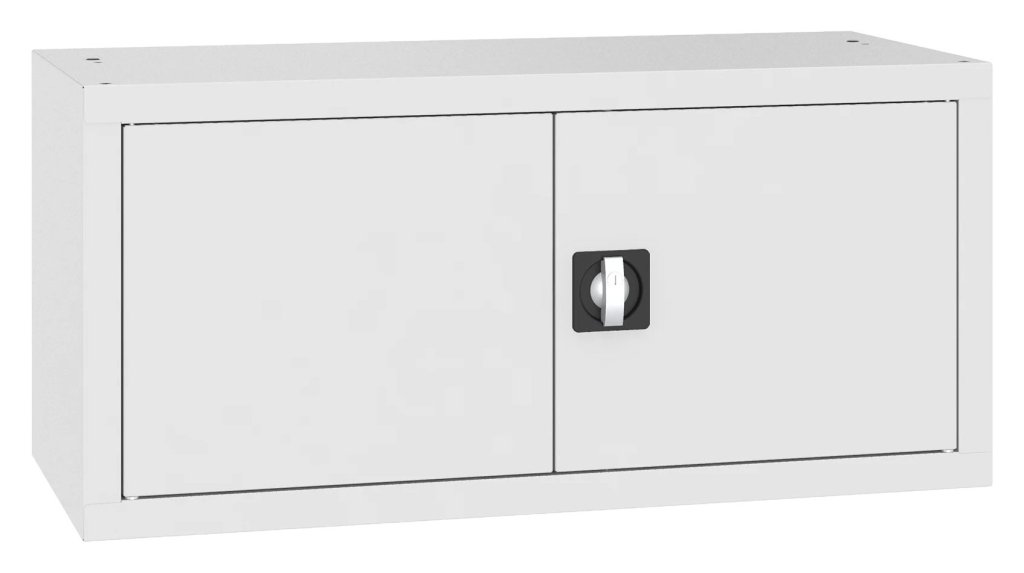 Dvojdverová kovová skriňa s jednou policou, vhodná ako nadstavec. Šírka 600 / 800 / 1000 / 1200 mm (pozri varianty produktu), výška 465, hĺbka 435 mm. Dvojbodový rozvorový zámok, rôzne farby.