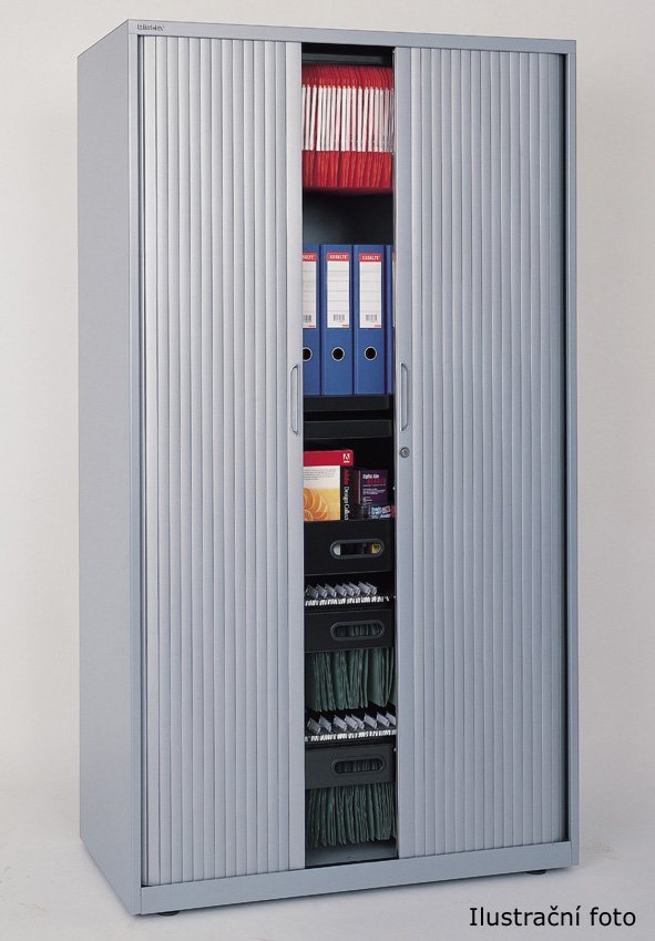 Spisová skriňa SystemFile s žalúziovými dverami. Výška 1947 - 1971, šírka 1000, hĺbka 470 mm. Tuhý zvarenec z oceľového plechu celý popis a parametre
