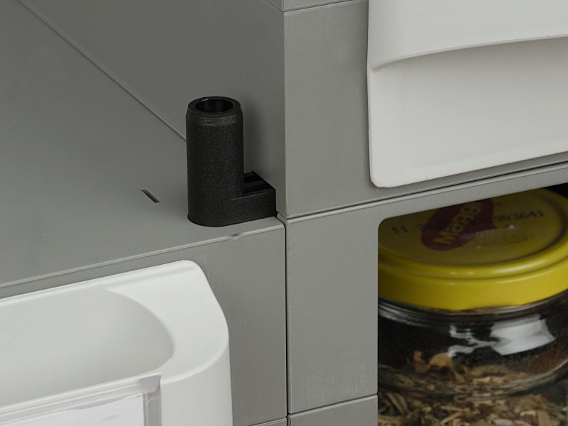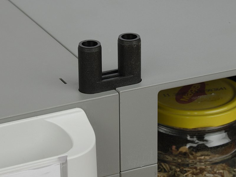 • Spojky s vácovými kolíky se používají výhradně s robustními rámy v případech, kdy chceme ze samostatných sestav postavit regál, nebo jiný větší celek.