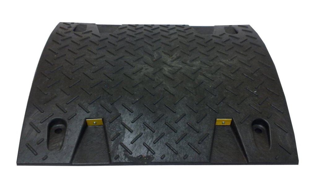 Stavebno-dopravné zariadenie k zníženiu nežiaducich rýchlosťou vozidiel alebo k dodržiavaniu dovoleniek rýchlosťou vozidiel na miestnych komunikáciách. Použitie - cesty, parkoviská, vjazdy do objektov. Farba čierna, pre rýchlosť 10 km/h. Vyrobené z odolnej recyklovanej zmesi. Dobre viditeľné v noci. Výška 60 x šírka 500 x hĺbka 430 mm.