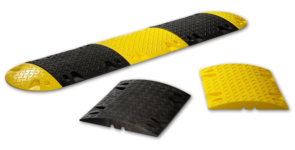 Stavebno-dopravné zariadenie k zníženiu nežiaducich rýchlosťou vozidiel alebo k dodržiavaniu dovoleniek rýchlosťou vozidiel na miestnych komunikáciách. Použitie - cesty, parkoviská, vjazdy do objektov. Farba žltá, pre rýchlosť 10 km/h. Vyrobené z odolnej recyklovanej zmesi. Dobre viditeľné v noci. Výška 60 x šírka 500 x hĺbka 430 mm.