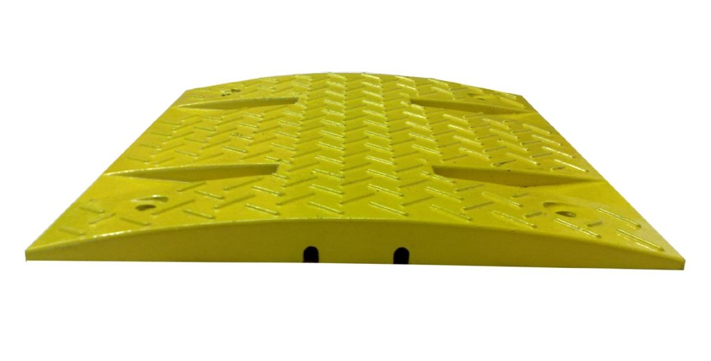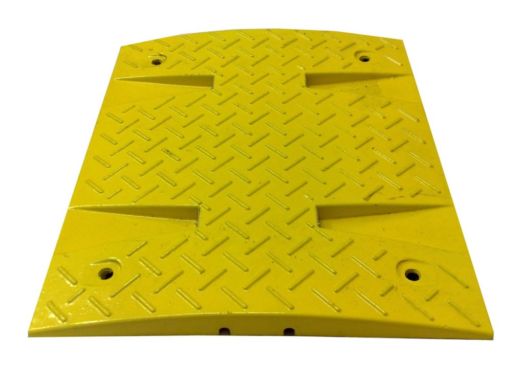 Stavebno-dopravné zariadenie k zníženiu nežiaducich rýchlosťou vozidiel alebo k dodržiavaniu dovoleniek rýchlosťou vozidiel na miestnych komunikáciách. Použitie - cesty, parkoviská, vjazdy do objektov. Farba žltá, pre rýchlosť 10 km/h. Vyrobené z odolnej recyklovanej zmesi. Dobre viditeľné v noci. Výška 60 x šírka 500 x hĺbka 430 mm.