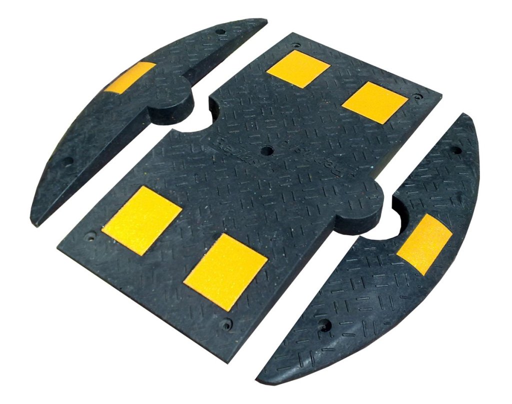 Stavebno-dopravné zariadenie k zníženiu nežiaducich rýchlosťou vozidiel alebo k dodržiavaniu dovoleniek rýchlosťou vozidiel na miestnych komunikáciách. Použitie - cesty, parkoviská, vjazdy do objektov. Farba čierna, pre rýchlosť 10 km/h. Vyrobené z odolnej recyklovanej zmesi. Dobre viditeľné v noci. Výška 60 x šírka 500 x hĺbka 430 mm.