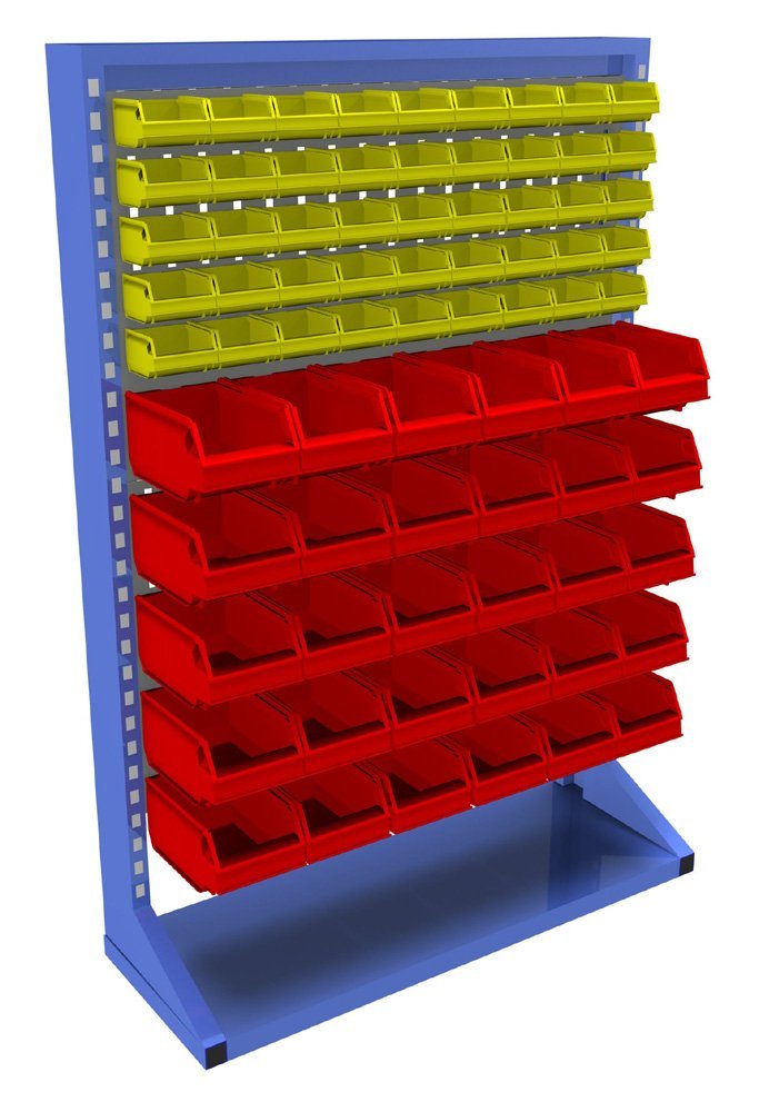 Stacionárne jednostranné panely s vybavením. Konštrukcia stojanu je tvorená robustným rámom s kovovými perforanými stenami pre zavesenie plastových boxov a držiakov náradia. Rám je lakovaný odolnou práškovou farbou, perforované panely sú pozinkované alebo lakované odolnou práškovou farbou.