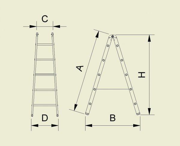 Štafle Forte, počet nášlapov 2x5, max. výška 1490 mm, šírka 502 mm. Nosnosť 150 kg.