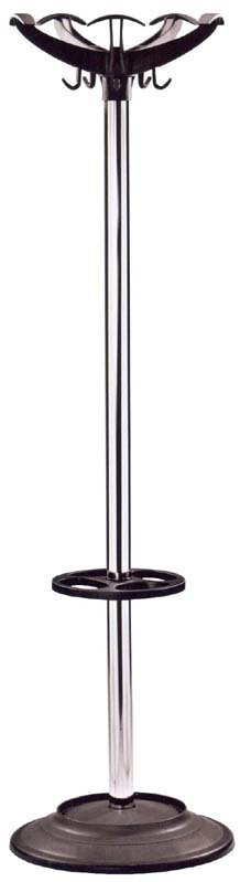Stojanový věšiak, farba čierna alebo chróm, plastové prvky čierne, výška 1730 mm.