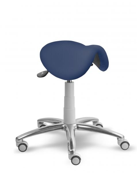 Zdravotnícka stolička s tvarovaným sedákom "sedlo", vyšším piestom a kruhovou oporou nôh. Farba kostry šedá alebo čierna. Šírka sedadla 42 cm. Výška sedenia 51 - 71 cm.