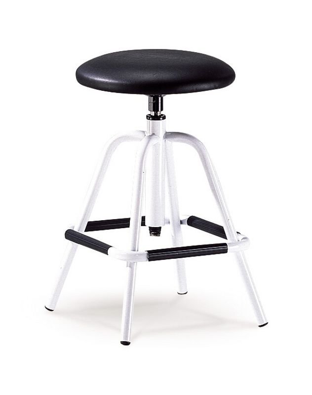 Laboratórna stolička s nosnosťou 150 kg s oceľovou kostrou, povrchová úprava lesklý chróm. Čalúnenie umývateľná koženka - široký výber farieb, výška sedenia 50 - 69 cm, kruhová podnož pre oporu nôh. Hmotnosť 11 kg, záruka na kovové časti 5 rokov, na ostatné 2 roky. Výnimočná svojou spoľahlivosťou a dlhou životnosťou.