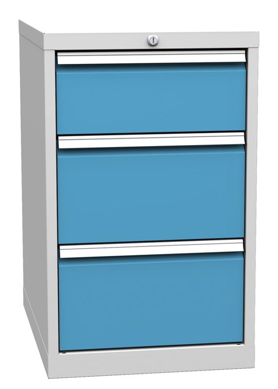 Trojzásuvkový kontajner pracovného stolu, šírka 500, výška 810, hĺbka 700 mm. 1x zásuvka 180, 2x 240 mm. Farba korpusu RAL 7035 svetlosivá.
