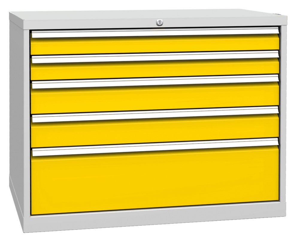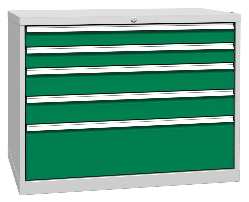 Päťzásuvkový kontajner pracovného stolu, šírka 1000, výška 810, hĺbka 700 mm. 2x zásuvka 90, 2x 120, 1x 240 mm. Farba korpusu RAL 7035 svetlosivá.