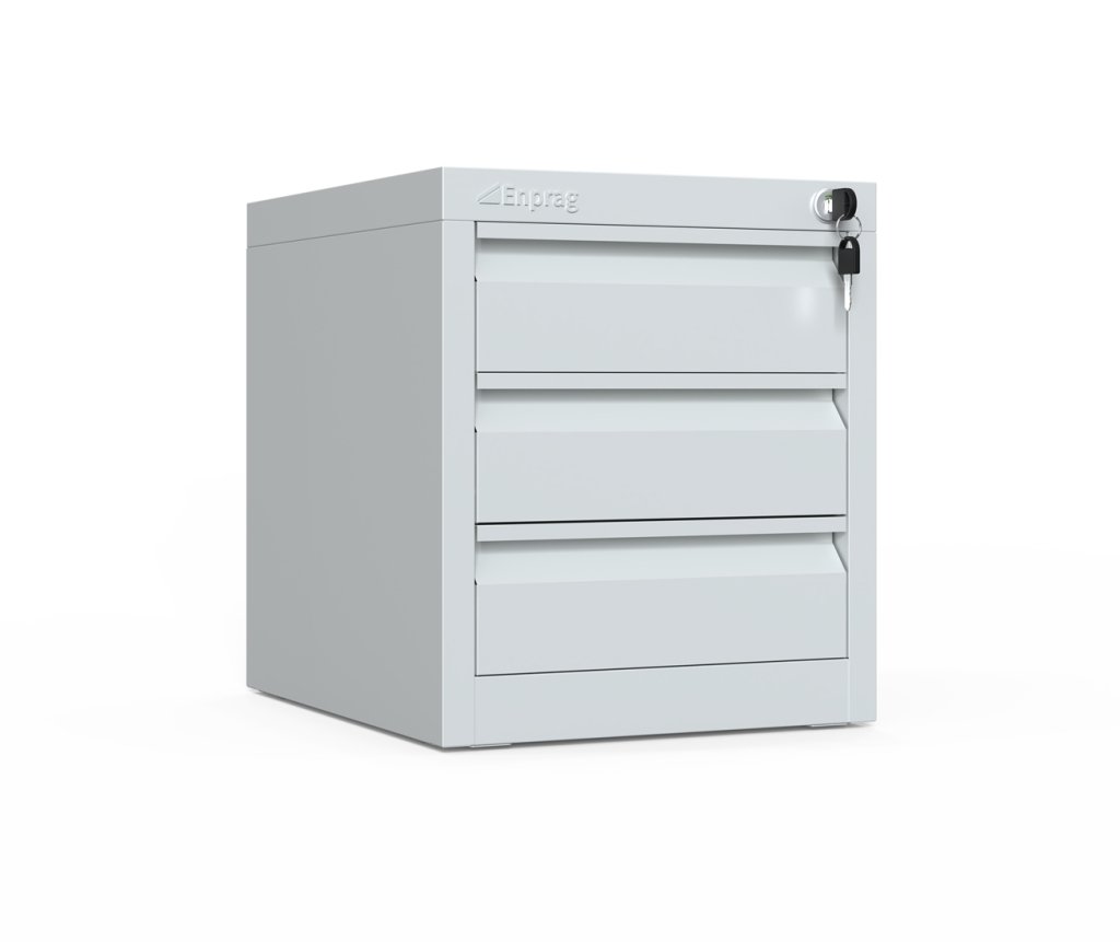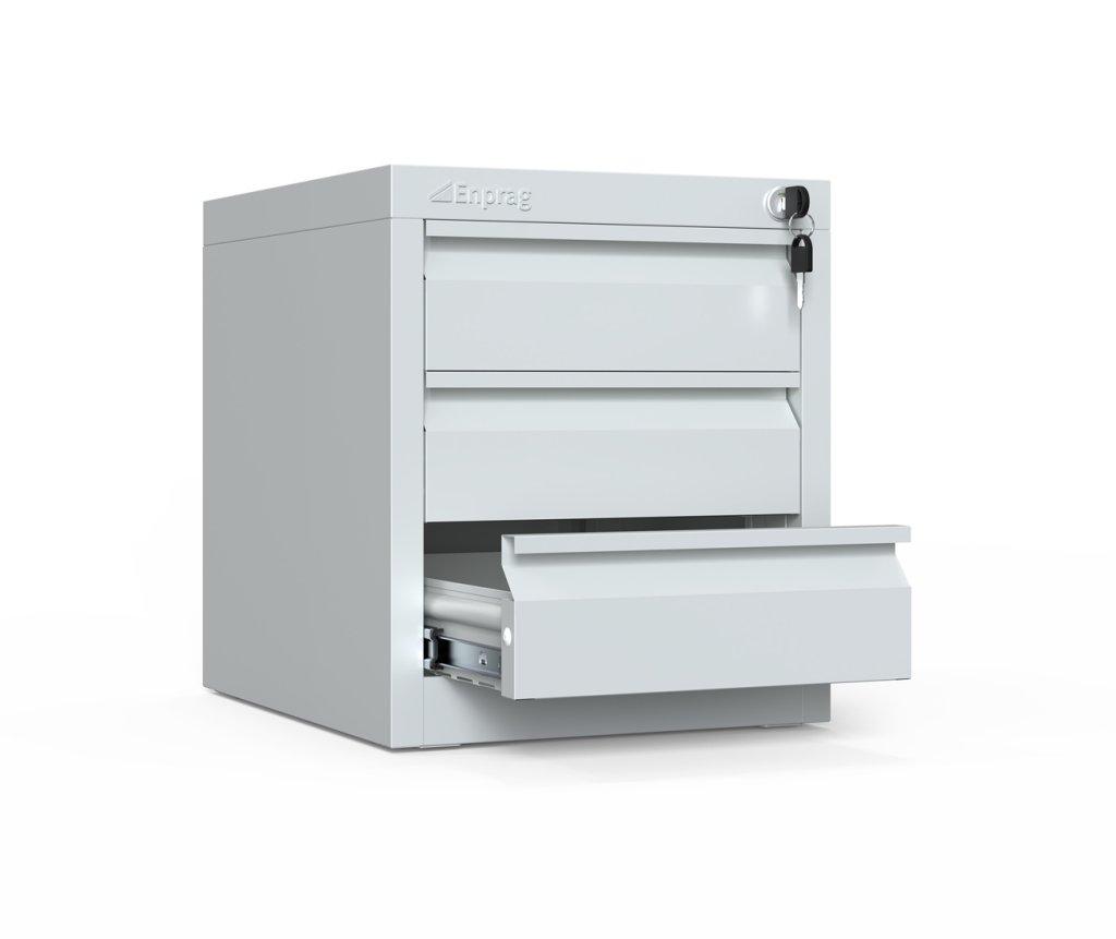 Podvesný kontajner s tromi zásuvkami pre pracovný stôl, výška 450, šírka 565, hĺbka 580 mm. 3x zásuvka, farba korpusu RAL 7035, farba zásuvky RAL 5015.