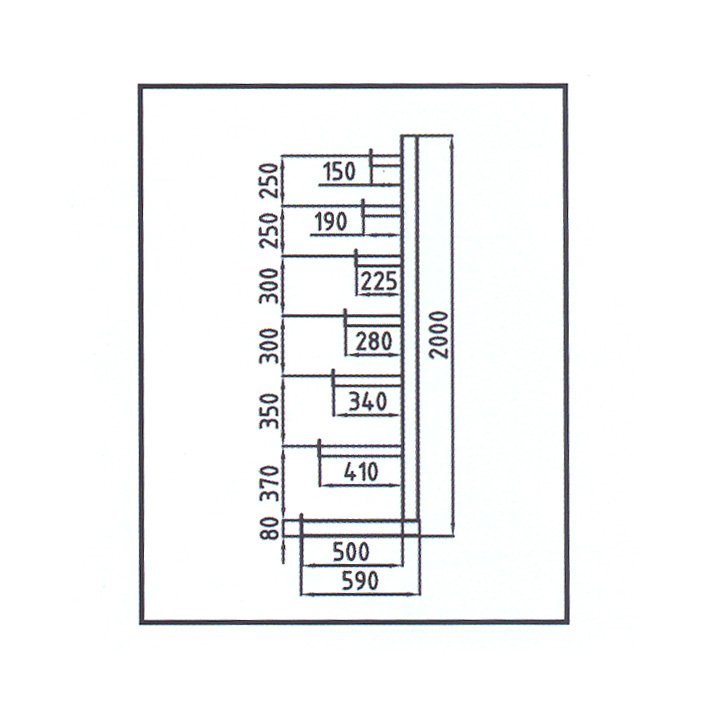 Konzolový regál ATLAS ST jednostranný s rozdielnou dĺžkou ramien. Počet ramien 6 na jednu stojinu, počet stojin 4. Výška regálu celý popis a parametre