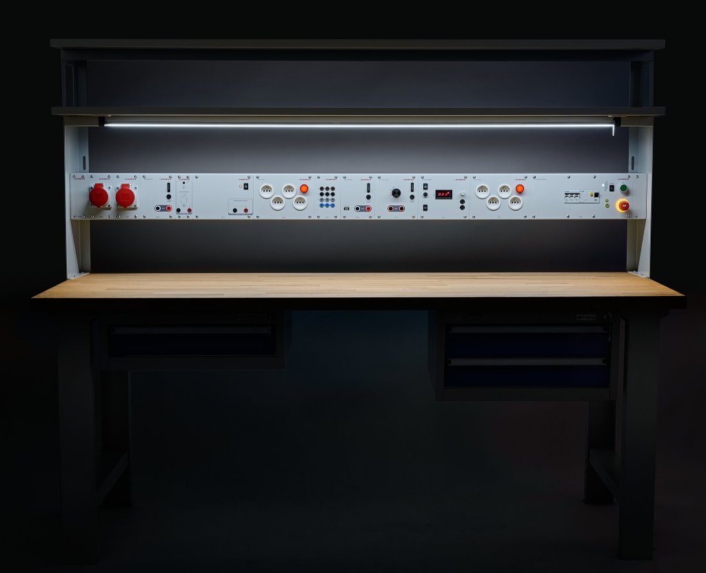 Individuálne riešené zloženie modulov v prístrojovej lište umožňuje prispôsobiť pracovisko ELWork všetkým potrebám vykonávaných úloh a prác. Prístrojovú lištu nakonfigurujeme presne podľa vašich potrieb a požiadaviek. Základom prístrojovej lišty je povinný modul M08K pre jednofázové alebo modul M32K pre trojfázové vybavenie. Vyberte si jednotlivé moduly spolu s pracovným stolom a ďalšími doplnkami ako sú police či osvetlenie a mi pre vás nachystáme cenovú kalkuláciu.