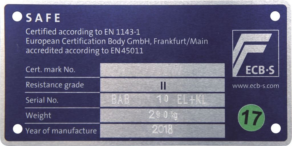 Pro lepší orientaci v klasifikaci bezpečnostních tříd uvádíme orientační úložné částky v Eurech. Pro zjištění příslušné finanční úložné částky je však vždy nutná konzultace s příslušnou pojišťovnou. Aby byly splněny požadavky bezpečnosti a zařazení trezoru do dané třídy je nutné dodržet řádné ukotvení trezoru ve zdi či v podlaze nebo zazdění stěnových trezorů, které je vždy uvedeno v přiloženém návodu.
