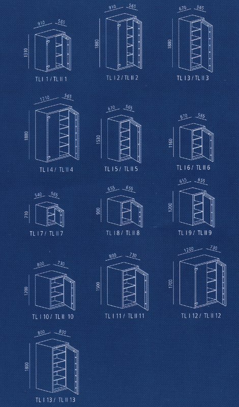 Trezor Toledo TL II 13 na ochranu utajovaných skutočností, dokumentov a cenností, bezpečnostná trieda 2, certifikát NBÚ Prísne tajné. Vonkajší rozmer - V 1800 x Š 800 x H 800 mm, vnútorný rozmer - V 1690 x Š 690 x H 635 mm. Hmotnosť 580 kg. Pomer veľmi priaznivé ceny a vysokej úžitkovej hodnoty jednoznačne predurčuje tieto produkty pre použitie v štátnom sektore a veľkých administratívnych prevádzkach.
