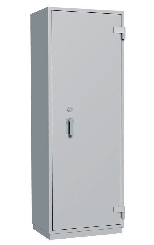 Trezorová skriňa so zvýšenou odolnosťou proti ohňu jednodverová, 3 prestaviteľné police, zamykanie na trezorový kľúč. Bezpečnostná trieda 1, certifikát NBÚ Tajné. Výška 1950 x šírka 700 x hĺbka 550 mm, hmotnosť 320 kg, barva svetlosivá RAL 7035. Doprava hradená podľa miesta dodania.