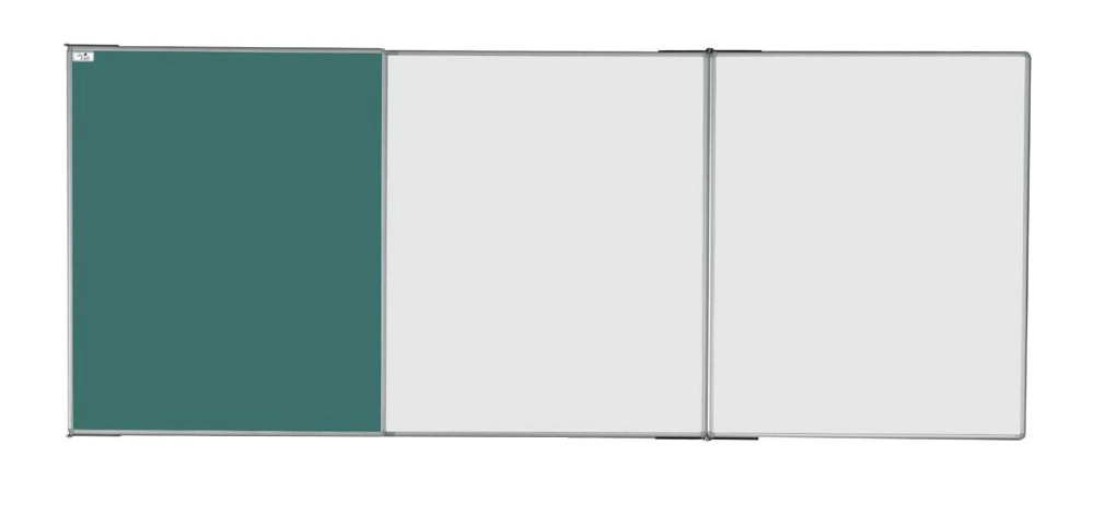 Trojdielna magnetická tabuľa s dvojvrstvovým keramickým povrchom najvyššej kvality. Otvorená tabuľa biela keramika pre popis fixkou, zavretá tabuľa zelená keramika pre popis kriedou. Rám z eloxovaného hliníka v prírodnom odtieni, plastové rohy. Rozmer v. 120 x š. 180 cm. Možnosti upevnenia k stene, na Zdvíhacie stojan AL alebo Pylón AL nájdete nižšie, v sekcii MÔŽETE SI DOKÚPIŤ spolu s ďalšími produktmi.