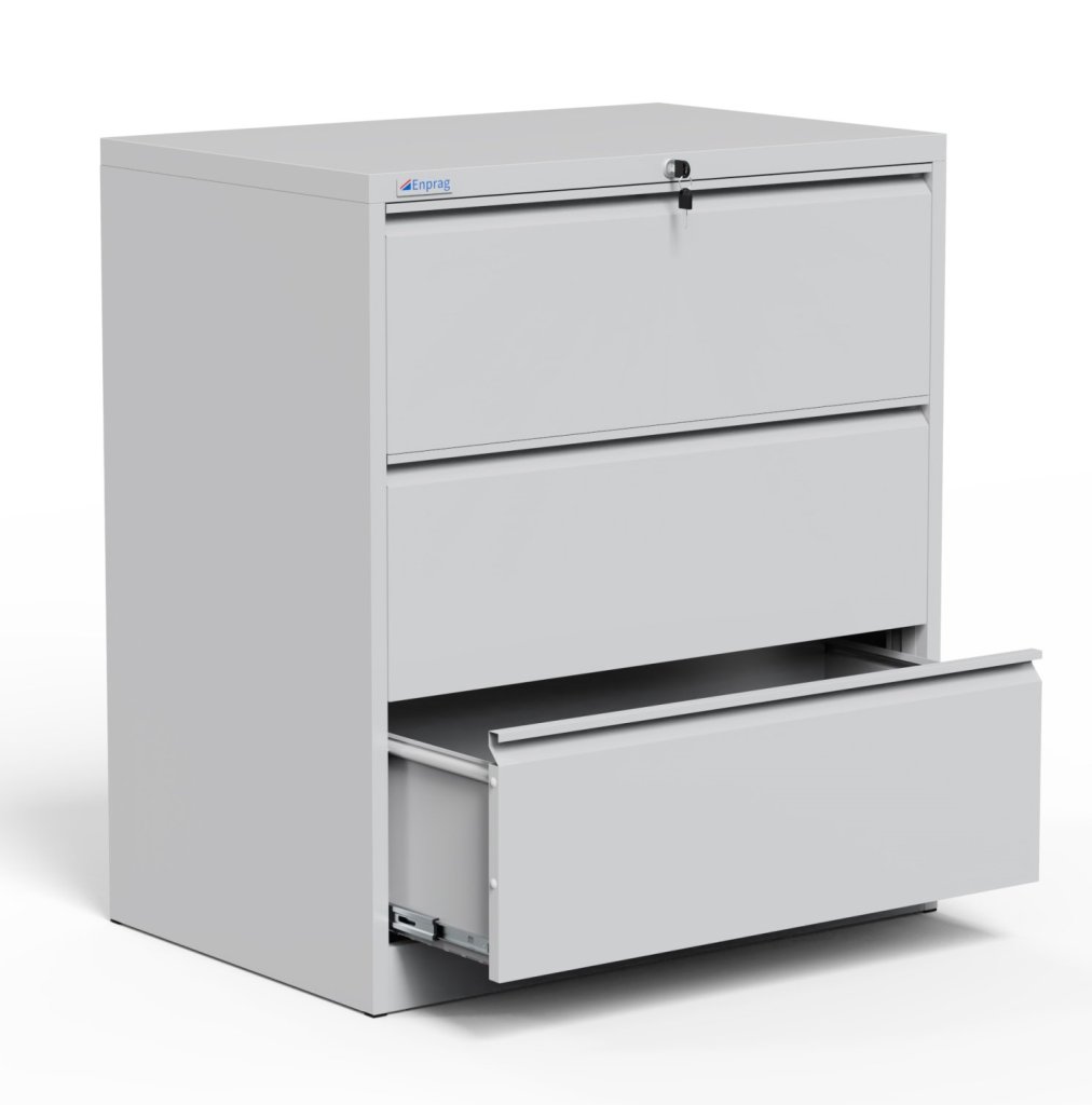 Trojzásuvková demontovaná kartotéka z oceľového plechu hrúbky 0,6 mm. Výška 1015 x šírka 900 x hĺbka 600 mm, centrálny zámok, plný výsuv. Pre dokumenty alebo závesné dosky formátu A4. Farba šedá RAL 7047.