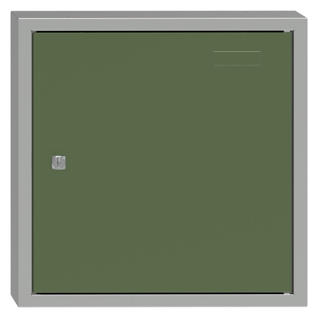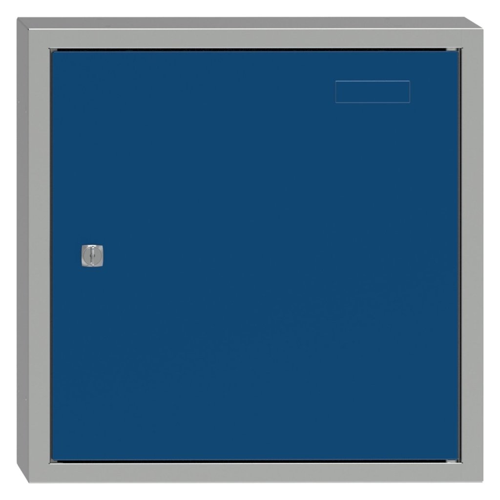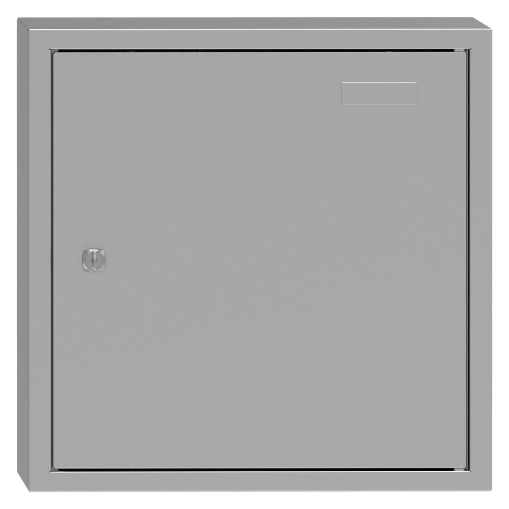 Jednodverová uzatvárateľná kocka. Výška 350, šírka 350, hĺbka 426 mm. Farba korpusu RAL 7035, svetlosivá.