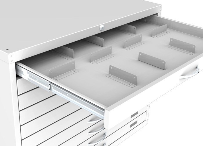 Vnútorné delenie pre zásuvku formátu A0. Sada obsahuje 24 ks deličov, ktoré rozdelia jednu zásuvku na 16x formát A4. celý popis a parametre
