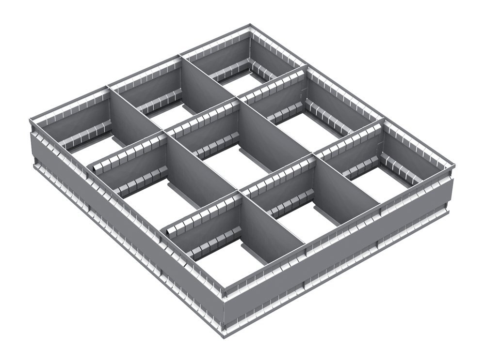 Vnútorné delenie zásuvok VND EPO 12B. Instalácia je možná do zásuviek, kde výška čela zásuvky je 120 a 150 mm. Rozmer 95 x 538 x 457 mm.