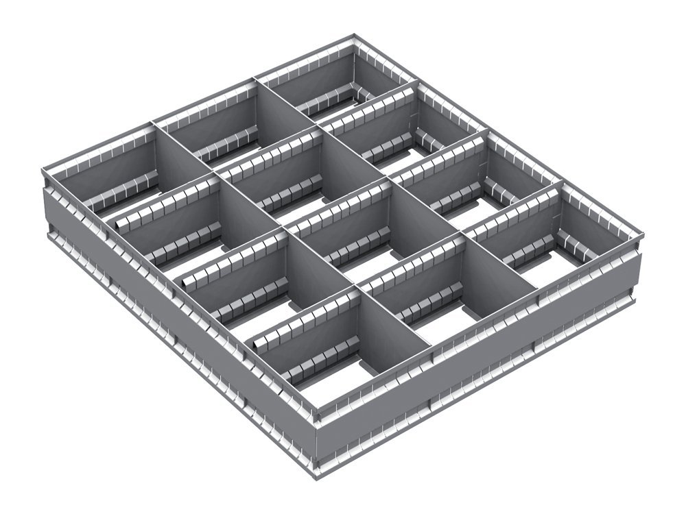 Vnútorné delenie zásuvok VND EPV 12C. Instalácia je možná do zásuviek, kde výška čela zásuvky je 120 a 150 mm. Rozmer 95 x 538 x 357 mm.